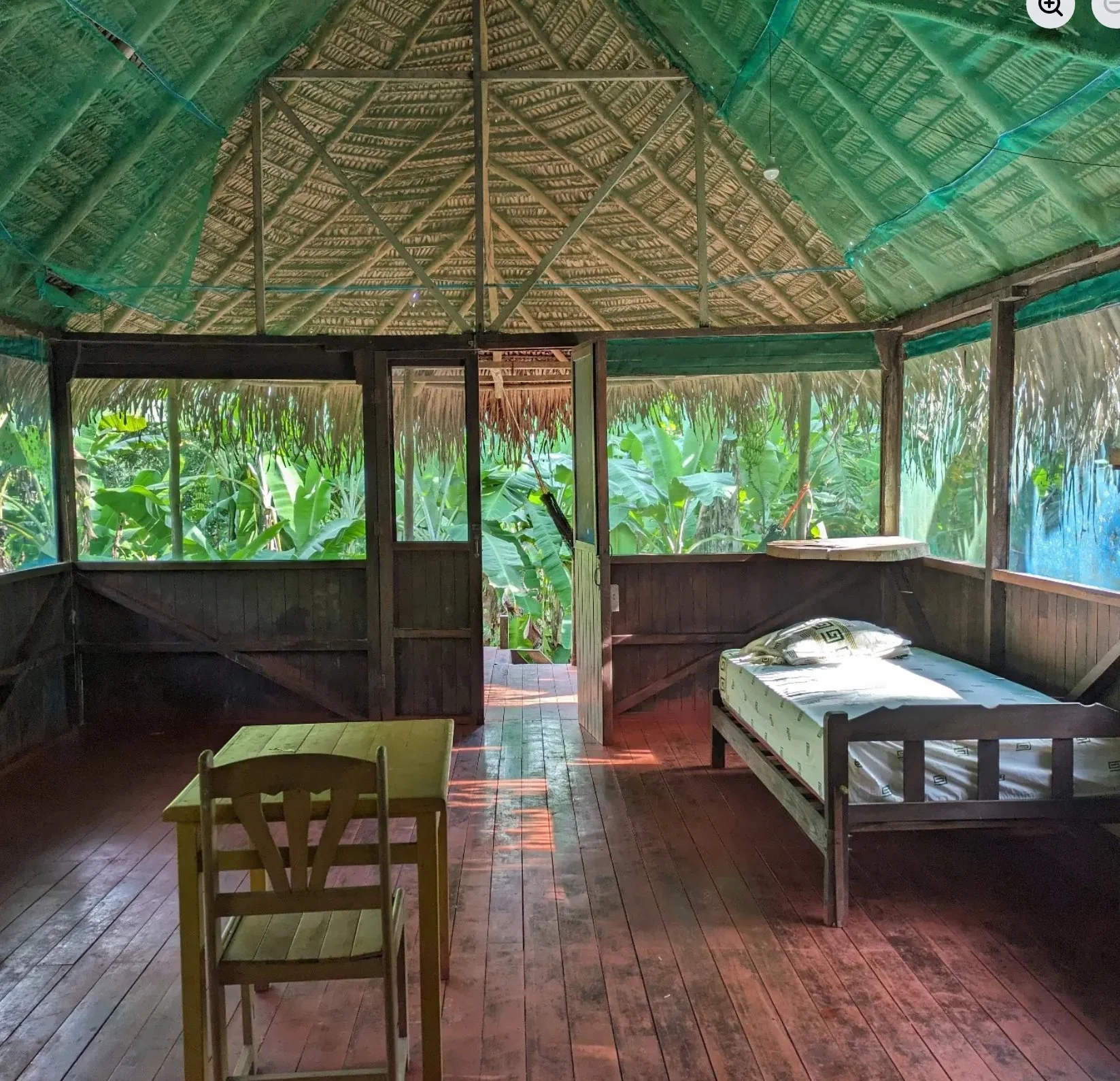 You’ll stay in private jungle tambos (rustic wooden bungalows) at the retreat center. Each is screened, simple, and designed for solitude, reflection, and safety during ceremonies. Composting toilets and shared gravity-fed showers are available. Week 2: We will be staying in mixture of Hotels, or with the Ashanka Tribe at their homes.