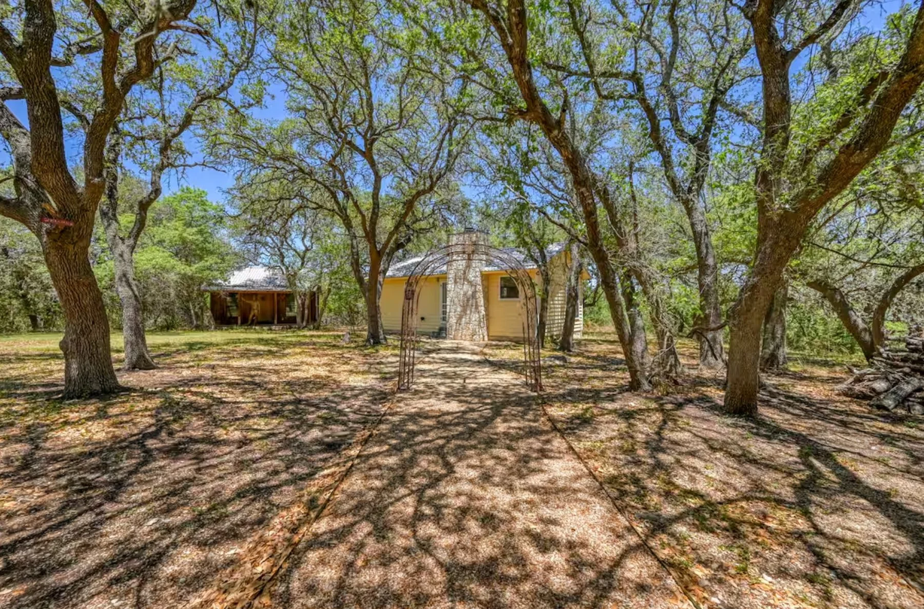 Just beyond the house, the land opens into wide grassy clearings, perfect for tents, play areas, and quiet moments under the oaks. A short walk leads you to the turquoise river, where littles can splash in the shallows and mothers can dip their feet into the cool, grounding water.